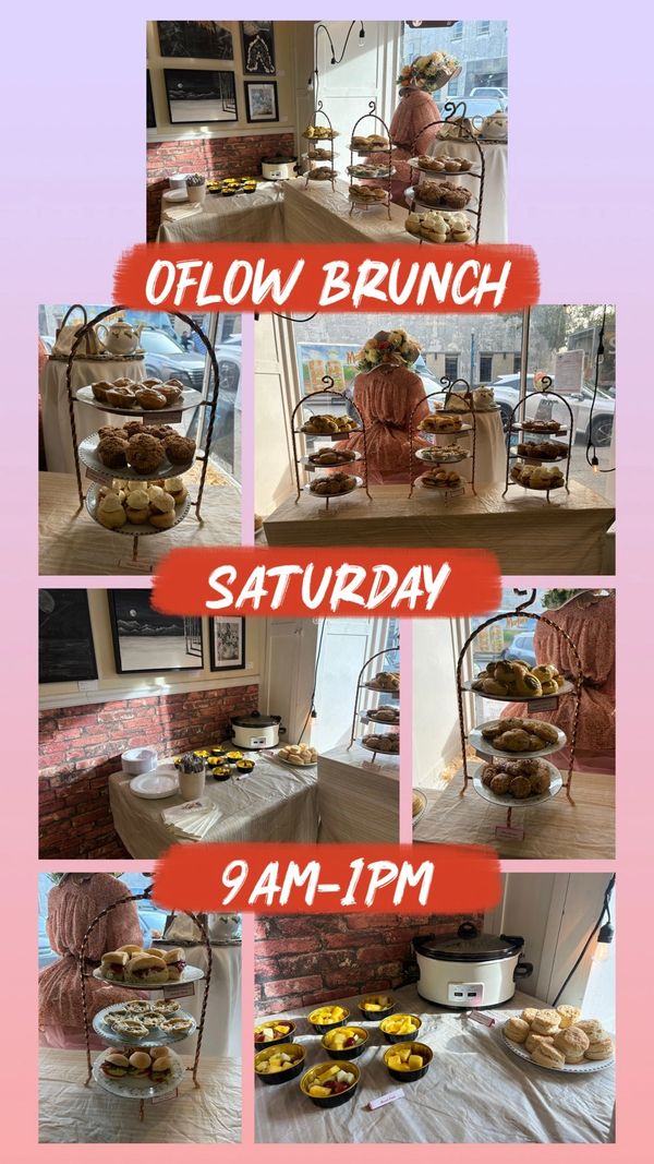 OFLOW's new Saturday brunch offering will surely fill you up with our homemade, scratchmade baked goods including our famous sausage biscuits and gravy. Only $15 all you can eat for adults or $12 for kids 3-8 years old. Under 3 is free with paying adult!